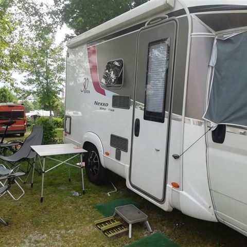Wir haben vorgesorgt und eine spätere Ankunft eingeplant. Über E-Mail haben wir alle notwendigen Infos für die erste Nacht bekommen. Die Schranke öffnet automatisch und den zugewiesenen Stellplatz 34 finden wir problemlos. Die Anlage hat eine angenehme Größe und die Anmeldung über Internet ist mehr als berechtigt. Das ist hier wohl ein Geheimtipp, vor allem bei den Nachbarn aus den Niederlanden. Die gelben Kennzeichen sind ziemlich dominant. Das ist für uns ein gutes Zeichen. Tatsächlich wird unser gutes Gefühl in den nächsten Tagen bestätigt. Der Campingplatz „Tauber – Idyll“ ist zu empfehlen.