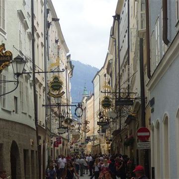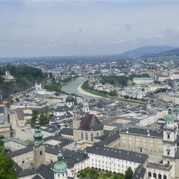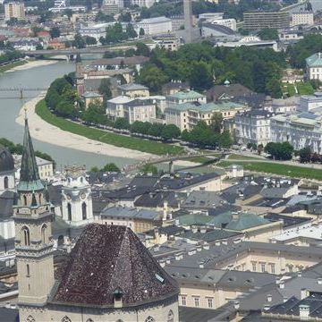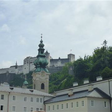 Montag, 05. Juni: Nach dem Frühstück nutzen wir den Radweg vom Campingplatz zur Salzach. Von dort am Fluss entlang bis zur Innenstadt. In der Stadt ist sehr viel los. Es sind einige Besuchergruppen unterwegs, die von einer Person mit Fahne durch die Stadt getrieben werden… Dazu laufen die Salzburger Festspiele „Pfingsten Spezial“. Heute ist noch einmal Besichtigungstag. Wir kaufen uns die Basiskarte für die Festung und fahren als erstes mit der Festungsbahn nach oben. Wir nutzen einige Winkel und Schießscharten um den tollen Blick über Salzburg bildlich festzuhalten. Der Fußweg in die Stadt führt uns an der alten Versorgungsbahn und auch an den Schienen der Festungsbahn vorbei. Die Bahn ist dann doch zu schnell für eine gute Aufnahme… Unten angekommen suchen wir uns in den kleinen Gassen einen Eissalon und bestellen endlich mal wieder ein Gedeck. In Italien findet man einfach kein anständiges Spaghettieis!!!