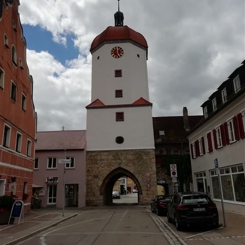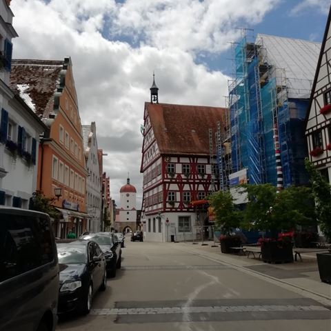 Sonntag, 26. Juni: Die Strecke nach Hause führt an Dinkelsbühl vorbei. Der letzte Besuch ist buchstäblich ins Wasser gefallen und wir wollen es heute bei Sonnenschein nochmal versuchen. An der Hauptstraße werden wir auf den P 5 geleitet, der als Wohnmobilstellplatz ausgewiesen ist. Richtig gute Anlage. Stromsäulen, große Parkflächen und sogar ein Platz zur Entsorgung. Auch Trinkwasser kann man gegen eine geringe Gebühr zapfen. Wir zahlen für drei Stunden drei Euro. 24 Stunden kosten nur sechs Euro.