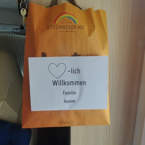Das wird in jeder Hinsicht eine etwas andere Tour. Zunächst einmal sind wir wider besseren Wissens in der Ferienzeit unterwegs. Deshalb bekommen wir auch mehrere Absagen auf unsere Reservierungsanfragen. Mit viel Glück mieten wir uns dann in Lindau am Bodensee beim Campingpark Gitzweiler Hof (genannt GITZ) ein. Elli kann Freitag früher Feierabend machen und wir kommen dadurch vor der Rush Hour aus Stuttgart raus. Gut gelaunt geraten wir dann aber vorm Tunnel Widerstall in einen insgesamt 15 Kilometer langes Stopp and Go Desaster. Die Ankunftszeit wird vom NAVI auf 19:30 Uhr geändert und Elli kündigt die verspätete Ankunft per Telefon an. Da die Rezeption bereits um 18:00 Uhr geschlossen wird bereitet man uns eine Willkommenstüte mit allen notwendigen Informationen vor. Der Gitzweiler Hof hat einen zentralen Anlaufpunkt neben der Rezeption, den Elefantenplatz. Der Mittelpunkt des Platzes wurde von einem Stammgast und gutem Freund der Besitzerfamilie entworfen, gegossen und gespendet. Eine gute Stelle für Selfies. Das Maskottchen Fani ist vom Bronzeelefanten abgeleitet und ist jeden Tag in der Animationsshow oder auch im Kinderbad zu bewundern.