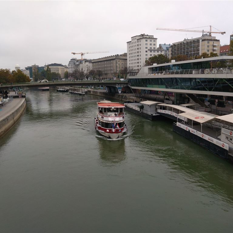 Samstag, 29.10.2022: Vorm Frühstück erfolgt die Anmeldung. Dabei erfahren wir von der Wien-Card und Elli bucht das allumfassende 72 Stunden – Ticket für Busse und Bahnen Wiens. Die 72 Stunden gelten ab 12:00 Uhr und wir stehen ziemlich pünktlich an der Bushaltestelle „Camping Wien West“. Umsteigebahnhof Hüttendorf in die U 4 bis zum Schwedenplatz. Über den Donaukanal und durch den Prater geht es zur Donau, denn dort wollen wir uns die Drehorte der „Soko Wien“ anschauen.