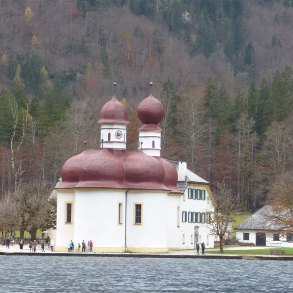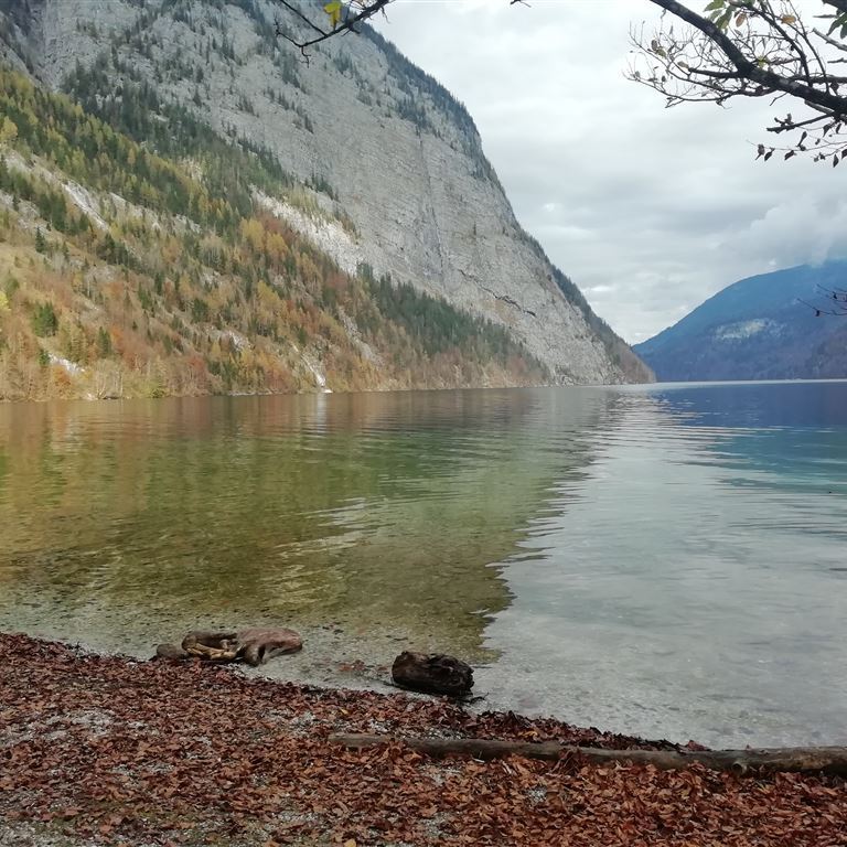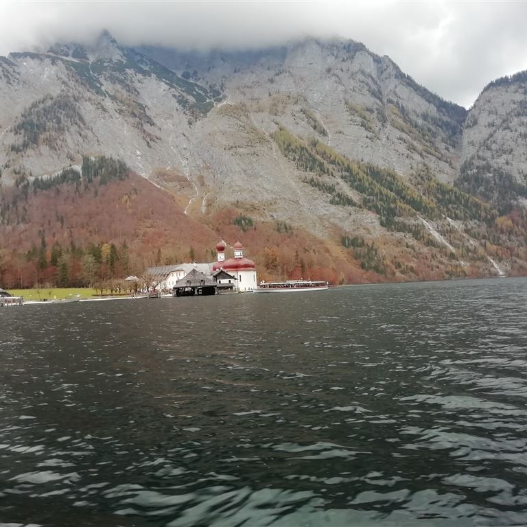 Dienstag, 02.11.2022: Die bestellten Brötchen holen an der Rezeption aber das Frühstück entfällt weil wir noch satt sind vom „To Go – Abendessen“. Danach folgt die Mutprobe, die Fahrt mit dem E-Schiff zur St. Bartholmä Kapelle. Alles halb so schlimm, der See liegt bewegungslos vor uns und die Schiffsführer haben es nicht eilig. Sie machen sogar eine Pause um mit einem Trompetenspiel das Echo an der gegenüberliegenden Felswand zu demonstrieren. Ohne negative gesundheitliche Auswirkung legen wir an. Die lange Heimfahrt im Hinterkopf wird es nur eine kleine Runde auf der Halbinsel. Es wird dunkel auf der Fahrt und die Sonne verabschiedet sich überaus sehenswert….