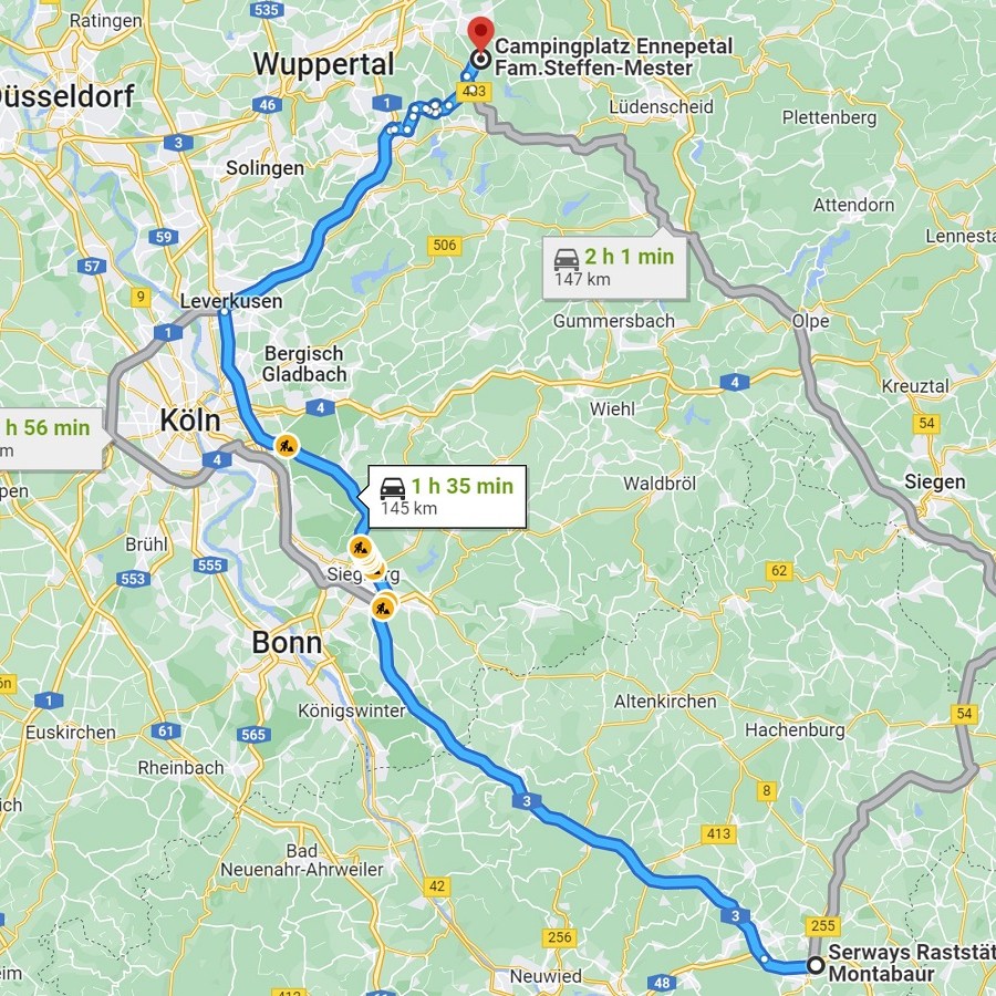 Der Glücksbringer vom Weihnachtsmann wird uns ab jetzt auf den Fahrten im Schneckenhaus begleiten und der Schildkröte unterm Dach Gesellschaft leisten…. Der „Tour Plan“ beinhaltet einen Abstecher nach Wuppertal. Eine Fahrt mit der Schwebebahn ist dabei Pflicht! Die erste Etappe endet allerdings bereits nach knapp 280 Kilometer auf der Raststätte Montabaur. Der harte Homeoffice-Tag fordert seinen Tribut und eine frühe Übernachtung.