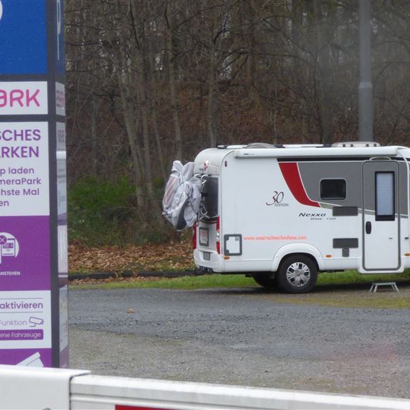 Samstag, 31. Dezember: Man kann es nicht glauben, aber der Campingplatz ist laut Aussage der Betreiberin für den Jahreswechsel ausgebucht. Ohne trödeln und schuldhafter Verzögerung sind wir dann auch relativ früh unterwegs und haben uns bereist um 12:00 Uhr am Parkplatz eingebucht. Mit der Easypark-App und den darin gespeicherten Daten öffnet die Schranke beim Anblick des Kennzeichens automatisch. Die App meldet den Standort weiter und die Abbuchung der Parkgebühren wird angekündigt. Ein riesiger, leerer Parkplatz ist immer ein Problem. Wo stellen wir uns hin? Nach zwei Fehlversuchen steht Pompui quer zur Schräge und benötigt daher keinen Auffahrkeil…