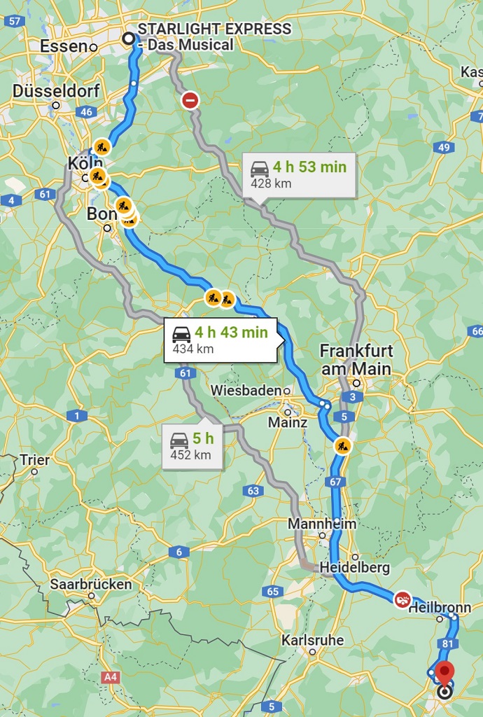 Mittwoch, 28. Dezember: Wir haben Tickets zur Silvester-Vorstellung des Starlight Express zu Weihnachten geschenkt. Das schreit natürlich nach einer Jahreswechsel – Tour. Nach Weihnachten und drei Tagen Homeoffice gehen wir auf Tour.