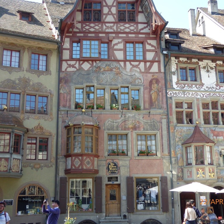 Später Saisonstart auf der Insel Reichenau. Wir werden am Freitag sehr nett auf dem Campingplatz Sandseele empfangen und haben freie Platzwahl. Samstag radeln wir zur Schiffsanlegestelle und setzen über nach Radolfszell. Dort treffen wir uns zu einem Kurbesuch und spazieren durch die Stadt. Ganz besonders hat uns bei einem Gebäude die Kunst am Bau gefesselt. Am Sonntag fahren wir nach Stein am Rhein und sind begeistert.