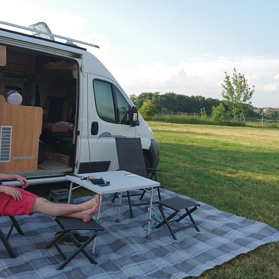 Wir geraten auf der B 10 in einen Hagelschauer, den unsere Dachfenster zum Glück ohne Schaden überstehen. Ab der Raststätte Gruibingen können wir sogar wieder auf trockener Straße fahren. Es geht, im Gegensatz zum letzten Trip nach Görlitz, richtig zügig vorwärts. Kurz nach Salzburg, weit nach Mitternacht, fahren wir ab. Es wird Zeit für eine Mütze Schlaf.