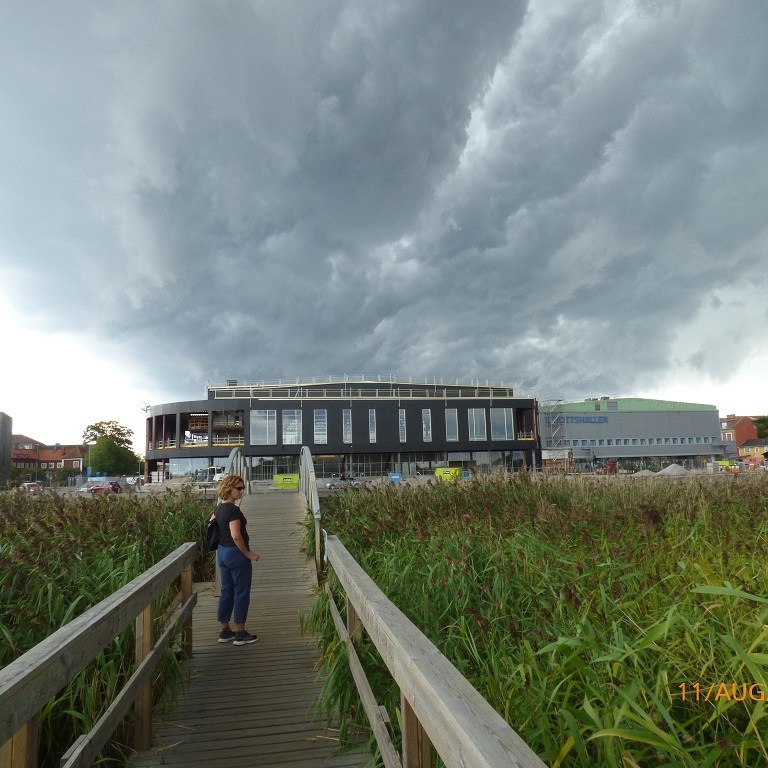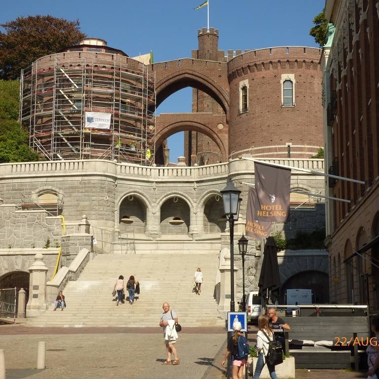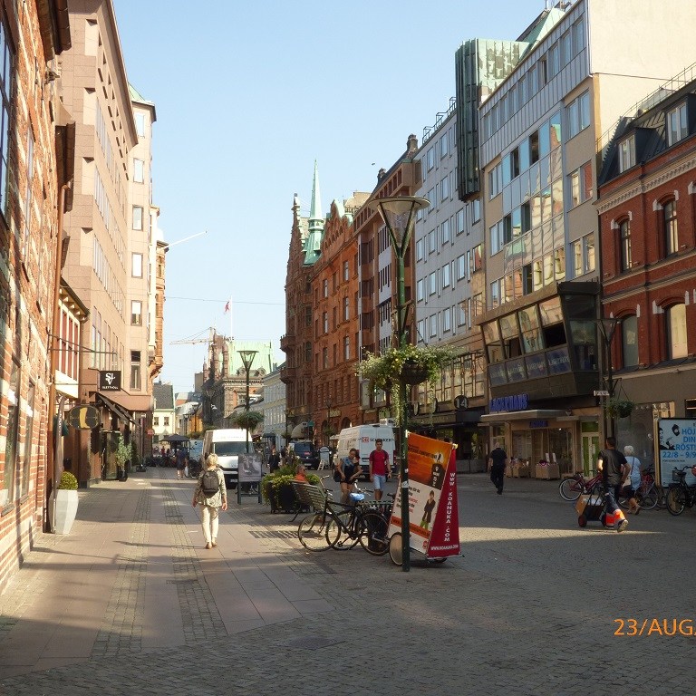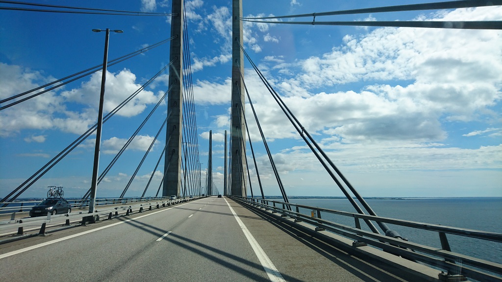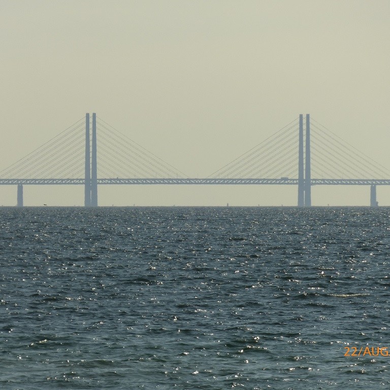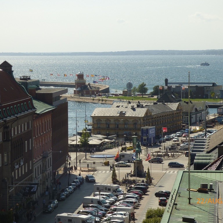 Nächster Halt ist Helsingborg. Vom Hafen aus kann man Dänemark mit bloßem Auge sehen. Die Überfahrt dauert lediglich 20 Minuten. Das nutzen die Schweden für Versorgungsfahrten nach Helsingör, den in Dänemark werden weniger Steuern auf beliebte Getränke erhoben. Wir parken am Fährhafen, laufen in die Stadt und besorgen uns einen Nachmittags-Snack. Lomma Beach ist kurz vor Malmö und wir übernachten hier um dann am nächsten Morgen das Frühstück in Malmö einzunehmen. Die Rast nutzen wir auch zur Reparatur. Kurz nach Helsingborg verabschiedet sich das Blinkermodul aus dem rechten Aussenspiegel. Vermutlich ist auf dem Parkplatz jemand dran hängengeblieben und hat das Teil wieder zurückgeschoben. Ich krame einen Kabelbinder aus der Werkzeugkiste und fixiere alles wie es sein soll. Das Provisorium hält tatsächlich bis Stuttgart. Vom Lomma Beach aus können wir auch schon die Öresundbrücke bewundern und morgen werden wir drüberfahren.