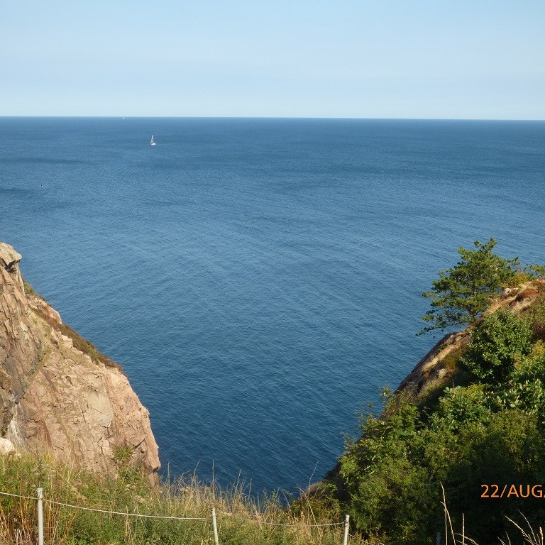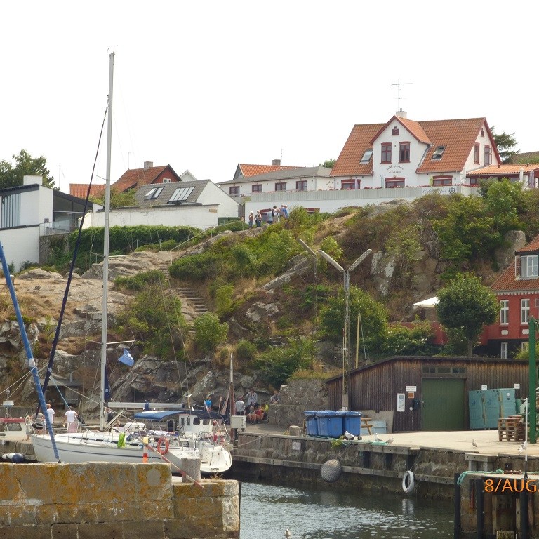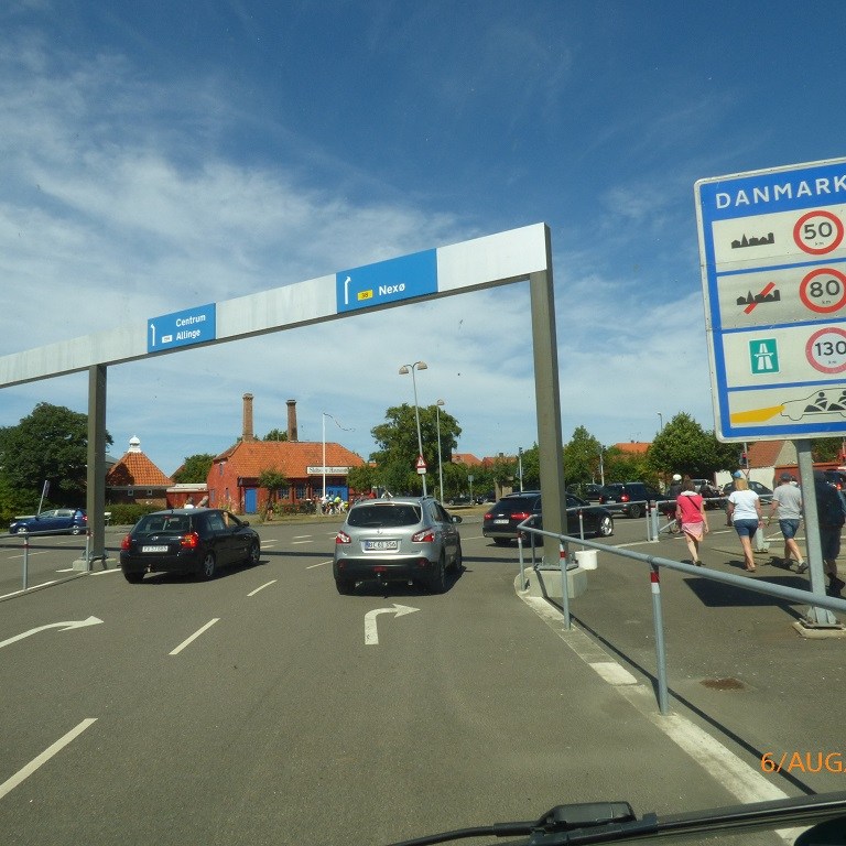 Wir sind wirklich früh dran und können unsere Fähre beim „Einparken“. Die Überhöhe bedingt, dass wir bei den letzten sind die einfahren und dann einen Platz an der Hecktür bekommen. Weil vor uns eine zweite Ebene eingezogen ist können die Pkw schon mal losfahren. Diese Ebene wird dann abgelassen und die dort abgestellten Pkw fahren auch vor uns raus. Jetzt geht das Zwischendeck ganz nach oben und wir passen mit Dachbox auf der Reling auch durch. Somit sind wir mal wieder ganz hinten… In Rönne starten wir die Bornholmrundfahrt in Richtung Nexö. Die gemütliche Fahrt wird durch den Halt in Svaneke unterbrochen.