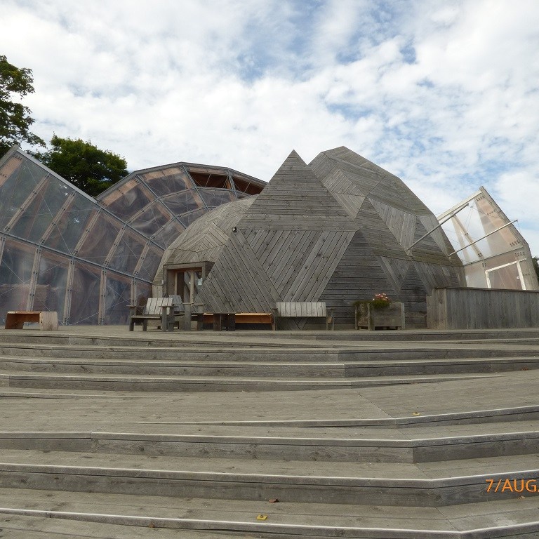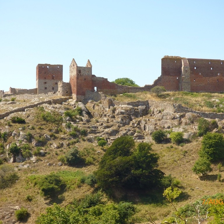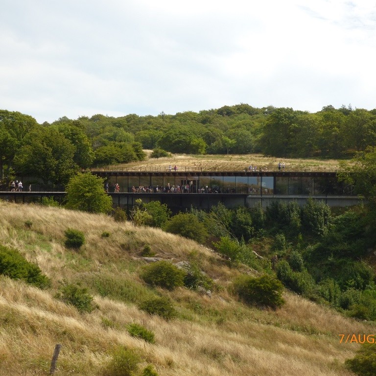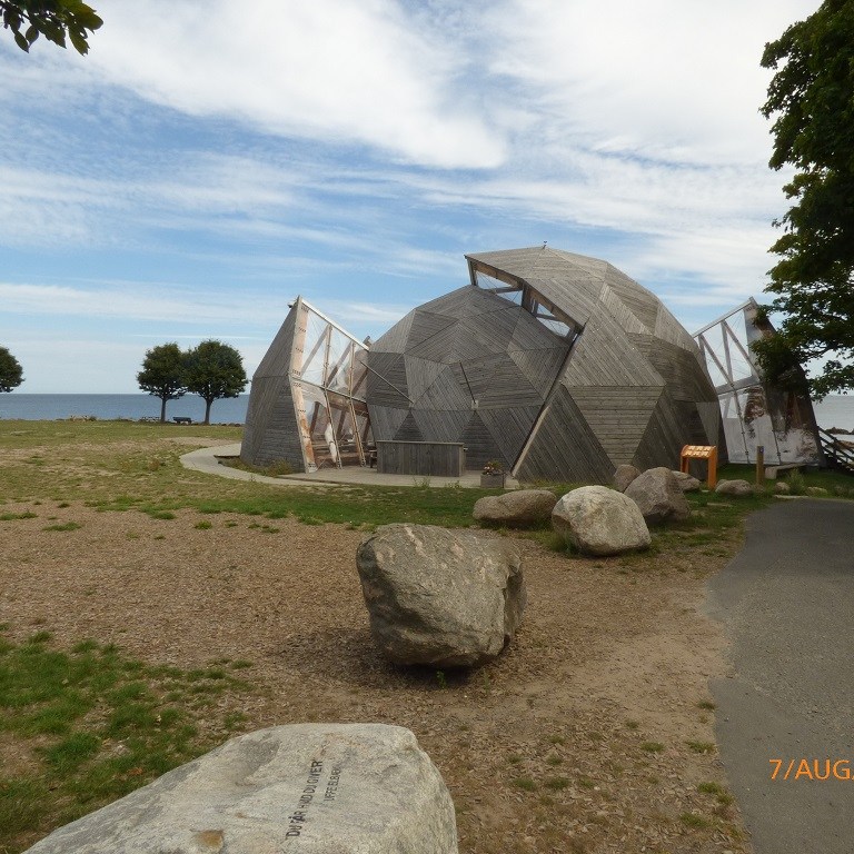 Die Insel zeigt sich von ihrer besten Seite. Das mag natürlich auch daran, dass wir mit „Eingeborenen“ unterwegs sind. Wir gehen am ersten Abend mit Marianne und Sören zur Räucherei und bedienen uns am Fischbüffet. Für den nächsten Tag empfehlen sie einen Besuch der Ruine Hammershus. Dort ist seit dem letzten Besuch ein großes modernes Informationszentrum entstanden. Auf dem Weg dorthin sollen wir unbedingt auch das neue Gemeindezentrum „The Dome“ anschauen.