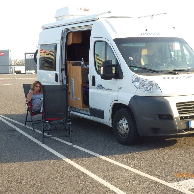 Am Tag unserer Abreise noch ein ausgedehnten Frühstück auf der Terrasse unserer Freunde. Ein toller Blick auf die Ostsee und das Wetter ist wieder einmal typisch für „sunny island“. Eine halbe Stunde später steht das Schneckenhaus im Fährhafen Rönne am Check in.
