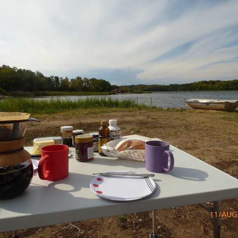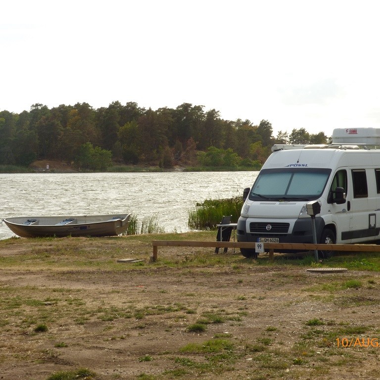 Wir sind spät dran und hundemüde. Nicht weit vom Fährhafen Ystad entfernt nutzen wir den Parkplatz eines Motocross Trainingszentrums zur Übernachtung. Die Gegend ist nicht wirklich geeignet für ein gemütliches Frühstück. Dann lieber beim nächsten Stopp in Kristianstad. Dort gönnen wir uns eine spezielle Teigware beim ansässigen Konditor. Neben der Strecke nach Karlskrona erregen einige originelle Bauwerke unsere Aufmerksamkeit. Das NAVI lotst uns in Karlskrona zum Campingplatz „Skönstavik“. Der gehört zur Gruppe „Nordik Camping + Resort“ und da gibt es zur Zeit die Aktion drei Nächte zahlen und vier Nächte bleiben…. Warum eigentlich nicht wir sind ja im Urlaub. Dazu bekommen wir einen tollen Stellplatz direkt am Wasser.