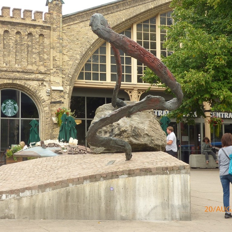 Nach dem Frühstück satteln wir die Räder, fahren bis zum Hauptbahnhof von Göteborg und binden unsere fahrbaren Untersätze davor an. Das rustikale Innere ist uns ein paar Aufnahmen wert. Vom Bahnhof gehen wir erstmal zum Hafen. Allerdings ist es nicht gerade einfach, denn durch die vielen Baustellen müssen auch Fußgänger einige Umwege laufen. Eigentlich gefällt uns die Stadt. Eigentlich, aber es sieht fast aus wie Stuttgart 21. Nur das sich in Göteborg die Begleiterscheinungen, man glaubt es kaum, um einiges negativer auswirken. Bei unseren Irrwegen durch die Stadt entdecken wir auch den Grund für diese große Anzahl von Baustellen. Göteborg wird für die 400 Jahr Feier im Jahr 2021 aufgehübscht. Die Ansicht bringt uns auf eine Idee. Wir feiern einfach mit und dann können wir auch Göteborg ohne Schutzplanen und Baustellenschilder bewundern.