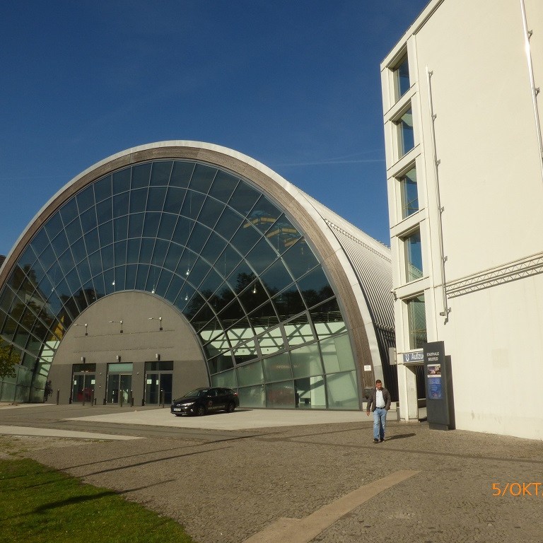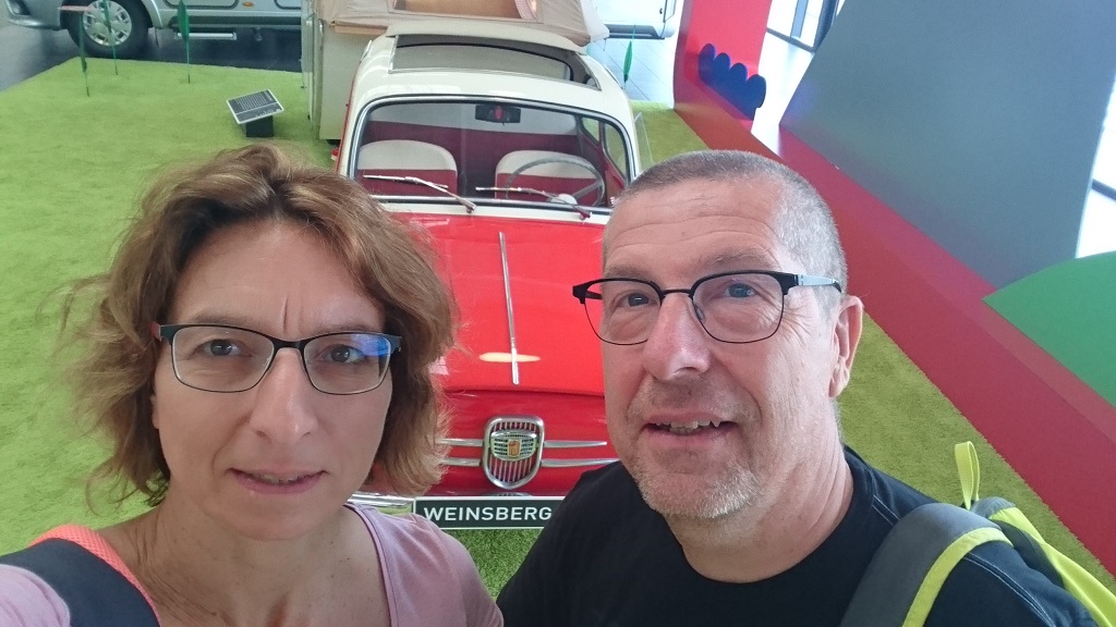 Wir sind tatsächlich zu früh und schauen uns in Ausstellungshalle für Wohnmobile der Hymer Gruppe in der unmittelbaren Nachbarschaft um. Lediglich die Werbung für das Hymer Museum hat uns neugierig gemacht. Das werden wir uns auf jeden Fall anschauen. Ansonsten war der Rundgang durch die Halle nicht wirklich erhellend.