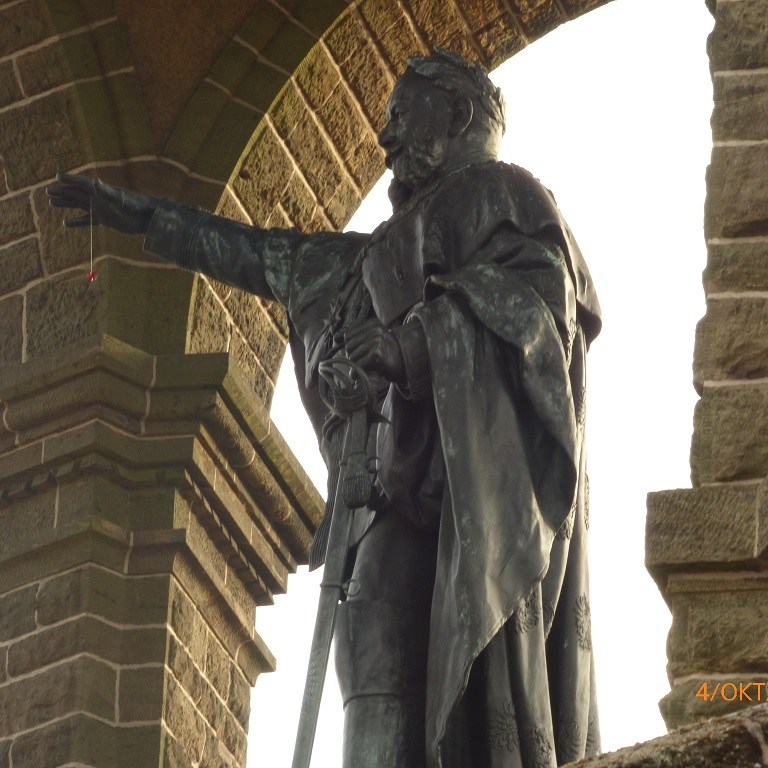 Auch für einen Abstecher zum Kaiser-Wilhelm-Denkmal bei Porta Westfalica haben wir Zeit. Die Art wie der Kaiser die Besucher begrüßt ist wirklich negativ besetzt. Aber die Lösung mit dem JoJo-Spiel am Finger lockert das Ganze auf.