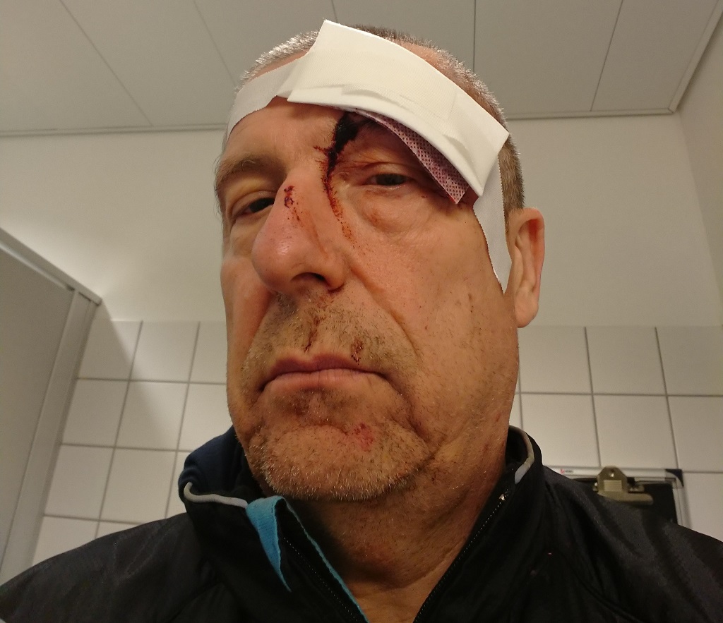 Die Falträder haben wir weiterhin für kleine gemütliche Fahrten genutzt. Ich bin damit gerne die acht Kilometer ins LKA gefahren. Der letzte Tag im Oktober ist als Saisonende fürs radeln vorgesehen. Es hat mal wieder etwas länger gedauert und da ich keine Snickers für den kleinen Hunger parat hatte treibt mich der Hunger. Fast Zuhause! Aber die Ampel zeigt rot und ich drängel mich zwischen Autos und Rinnstein nach vorne. Vermutlich bin ich im toten Winkel der Rückspiegel unterwegs…. Egal! Auf jeden Fall tut es einen Schlag und ich rutsche von der Motorhaube eines Pkw nach unten auf die Straße. Zum Glück schützt mein Helm vor schlimmeren Verletzungen. Das Ergebnis meiner Eile und damit verbundenen Unachtsamkeit: mit dem Krankenwagen zum Klinikum Stuttgart.